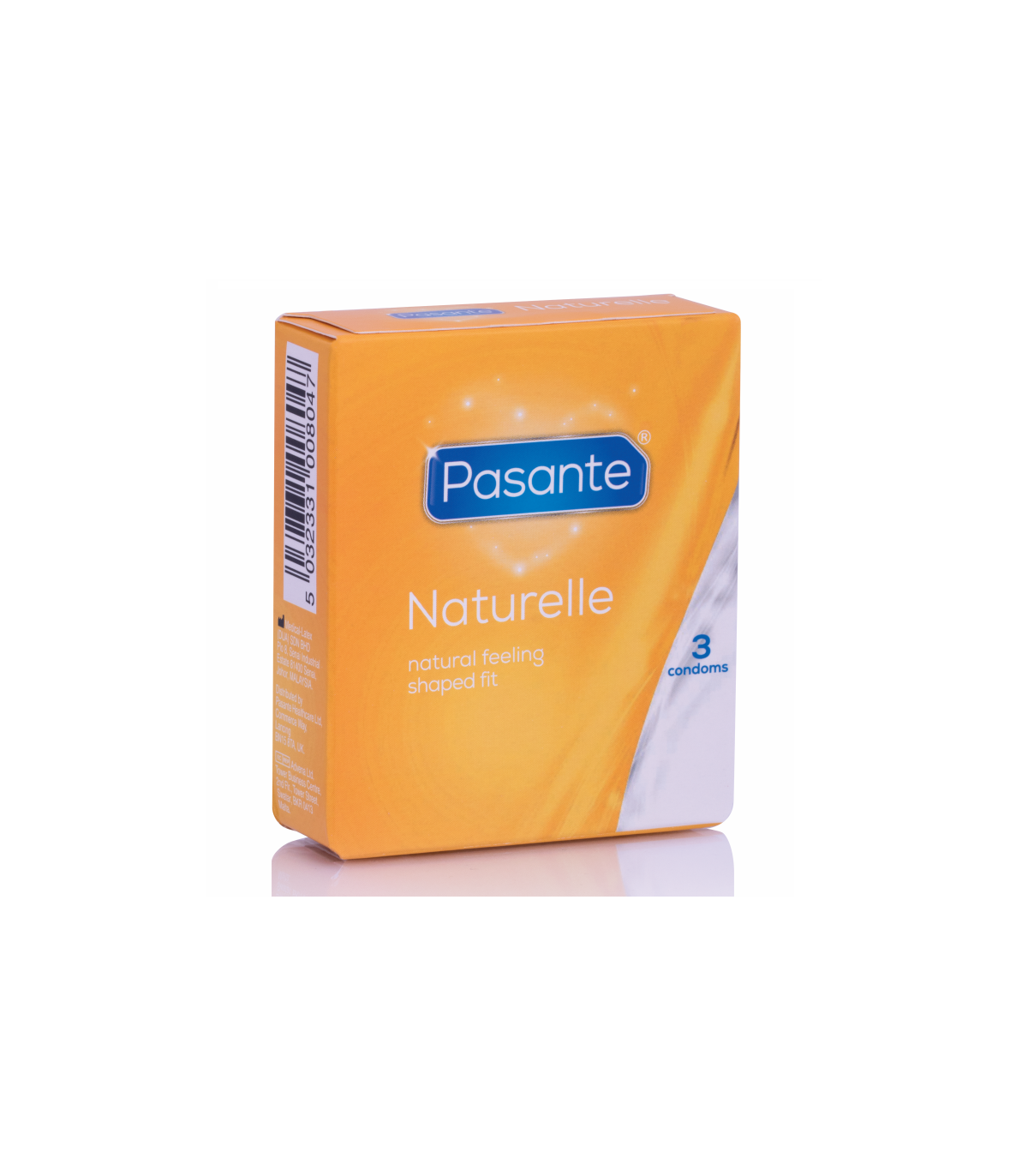 Los condones Pasante Naturelle tienen una ligera forma cónica para una sensación natural. Suave, de color natural y con punta de tetina.