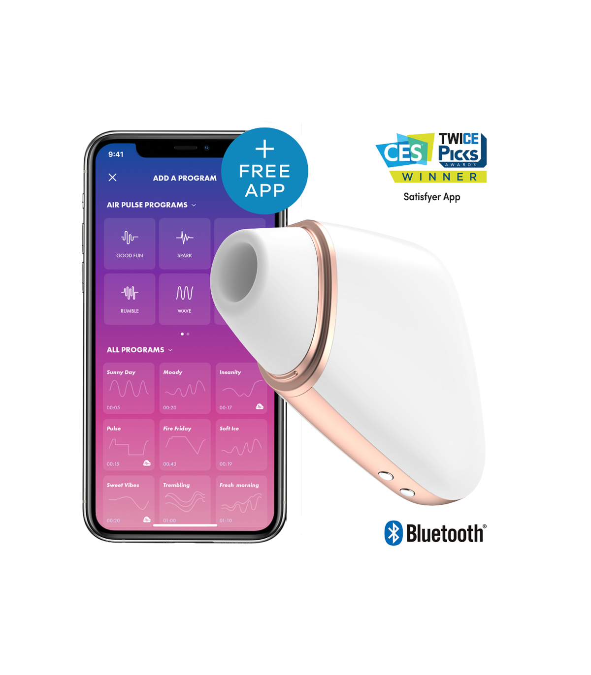 No debe perderse esto: ¡la nueva aplicación Satisfyer Connect le ofrece oportunidades únicas! Es compatible con cualquier teléfono inteligente, tableta Android o Apple y Apple Watch. Y lo mejor de todo: es gratis para usted y le esperan funciones nuevas y emocionantes cada mes. No es de extrañar que la aplicación Satisfyer Connect haya sido honrada en la feria de electrónica de consumo más grande del mundo CES en Las Vegas.