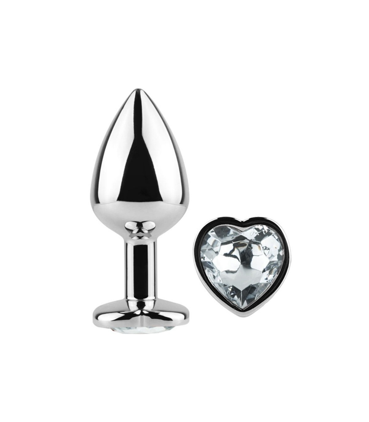 SECRETPLAY - METAL BUTT PLUG CLEAR CRYSTAL HEART SMALL SIZE 7 CM