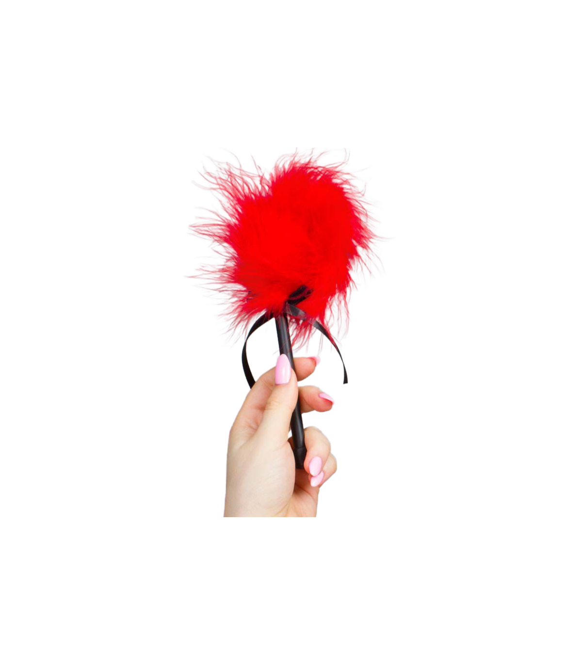 Deja que un cosquilleo recorra todo tu cuerpo con este delicado plumero de marabú rojo.