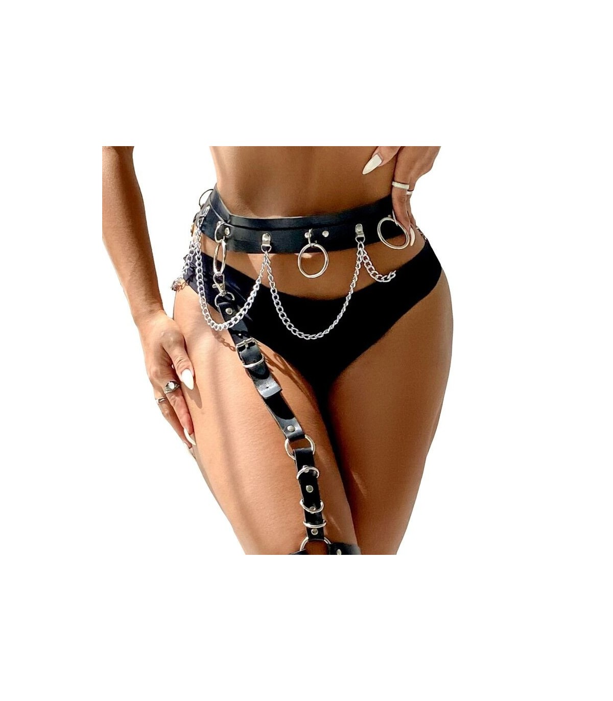 SUBBLIME - BELT AND GARTER HARNESS WITH RINGS AND CHAINDETAIL ONE SIZE