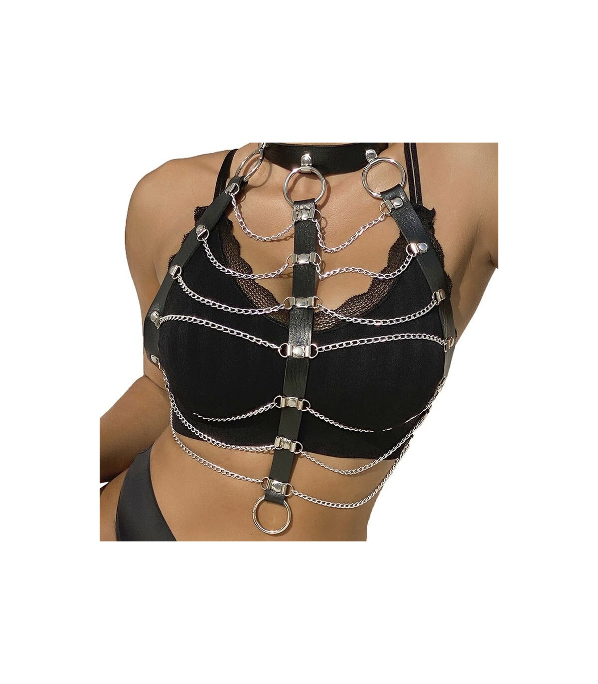 SUBBLIME - CHEST HARNESS LEATHER CHAINS BLACK ONE SIZE