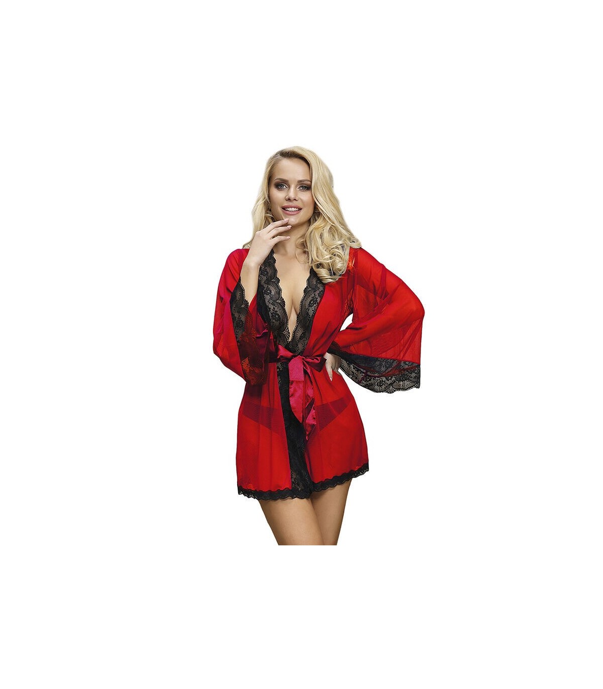 SUBBLIME - TRANSPARENT FABRIC ROBE WITH LACE DETAIL RED S/M