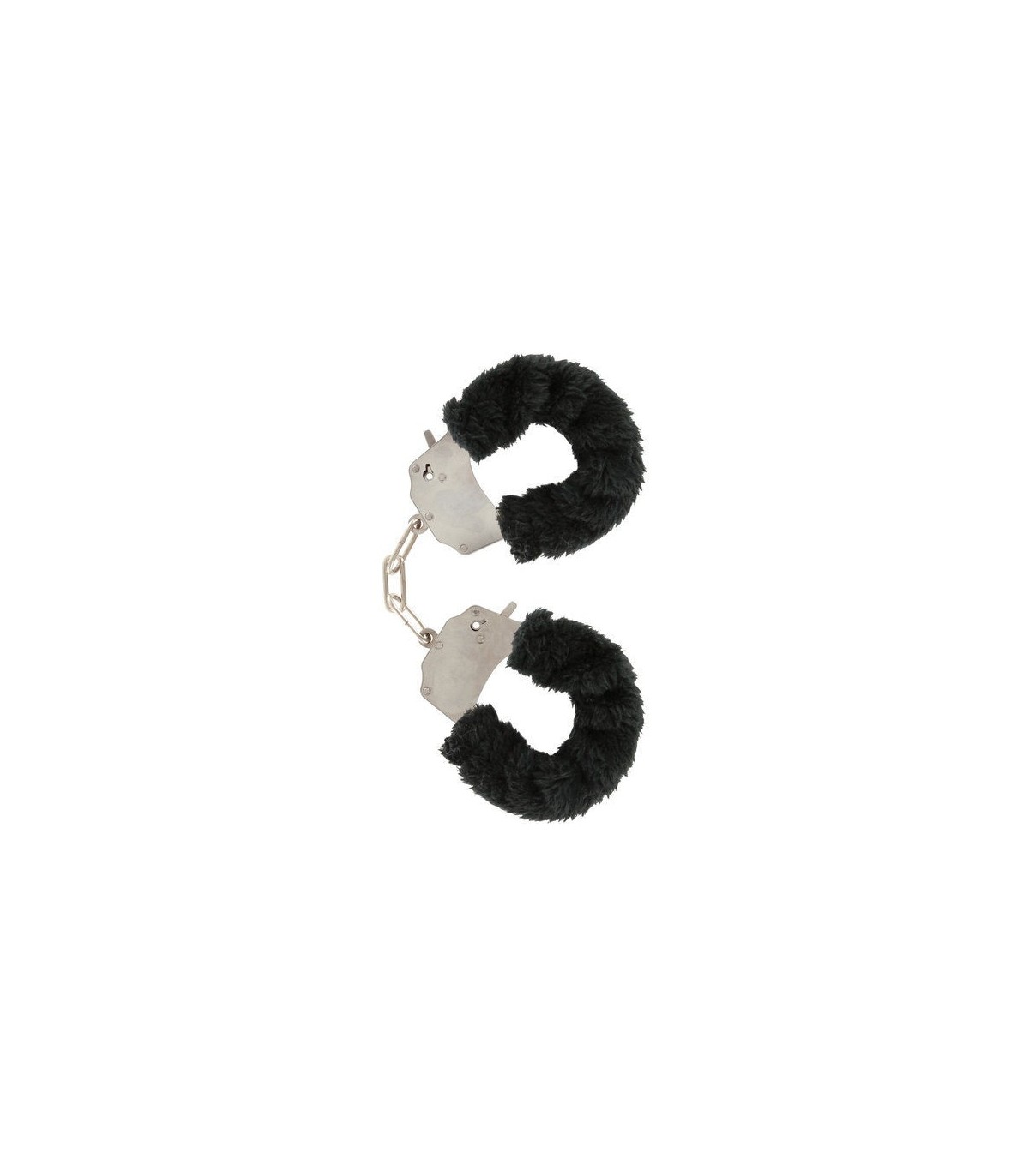Fabulosas espoesas de muñeca de dos piezas unidas con una cadena de acero cromado, recubiertas con un suave peluche alrededor de los puños de color NEGRO